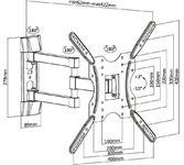 Наклонно-поворотный кронштейн со свободным наклоном. Встроенная регулировка уровня поможет найти идеальную позицию. Для использования с телевизорами 23"-55" весом до 40кг. Расстояние телевизора от стены 49-482мм. VESA 200x100,200x200,300x300,400x200,400x300,400x400. Возможен наклон до 15 градусов и подъем до 2 градусов. Поворот влево и вправо на 60 градусов . Есть регулировка экрана по часовой и против часовой стрелки на 3 градуса.