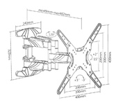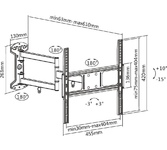 Наклонно-поворотный кронштейн со свободным наклоном. Открытая конструкция обеспечивает повышенную вентиляцию и облегчает доступ к проводам. Для использования с телевизорами 32"-55" весом до 30кг. Расстояние телевизора от стены 62~422мм. VESA 100x100,200x100,200x200,300x200,300x300,400x200,400x400. Возможен наклон до 10 градусов и подъем до 3 градусов. Поворот влево и вправо на 90 градусов .