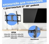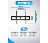 Для использования с телевизорами диагональю 60"-100", весом до 75кг. Расстояние телевизора от стены 30.5мм. VESA 200x200, 300x200, 300x300, 400x200, 400x300, 400x400, 600x400, 600x600, 800x600, 900x600.