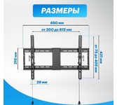 Для использования с телевизорами диагональю 32"-55", весом до 50кг. Расстояние телевизора от стены 56мм. VESA 200x200, 300x300, 400x200, 400x400. Возможен подъем на 5 и наклон на 10 градусов.