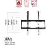 Для использования с телевизорами диагональю 13"-43", весом до 45кг. Расстояние телевизора от стены 22мм. VESA 50x50, 75x75, 100x100, 100x150, 150x100, 100x200, 200x100, 150x150, 200x200. Возможен наклон на 8 градусов.