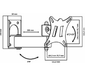 Консольный стальной кронштейн с наклоном и поворотом 4 степени свободы: Угол наклона: +/-15°, Угол поворота: 180°,Вращение: 360° и Смещение. Расстояние от стены 50-190 мм vesa 75x75 - 100x100 до 25кг.