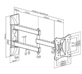 Консольный стальной кронштейн с наклоном и поворотом 4 степени свободы: Угол наклона: +/-15°, Угол поворота: 180°,Вращение: 360° и Смещение. Расстояние от стены 50-190 мм VESA 75x75 - 200x200 до 30 кг.
