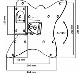 Наклонный-поворотный (Функц) Диагональ: 10"-55" (25-139см) Расстояние от стены: 90 мм Угол наклона: -6°/+18° Угол поворота: 135° Нагрузка: 25 кг Толщина металла адаптера 1,5 мм, основания 3 мм. Регулировка угла наклона и поворота без использования инструмента. Vesa 200*200.
