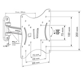 Кронштейн для телевизора. Тип: наклонно-поворотный Назначение: для тел-в Цвет: черный глянец Мин. диагональ: ТВ 17 Макс. диагональ: ТВ 42 Максимальный вес оборудования: 20 кг Угол наклона: -15°/+15° Угол поворота: 180° Установка: настенный Расстояние от стены до ТВ: 87-197 мм Поддержка крепления VESA 75х75 ДА Поддержка крепления VESA 100х100 ДА Поддержка крепления VESA 200х200 ДА