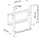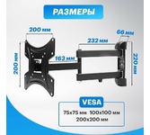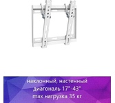Для использования с телевизорами диагональю 17"-43", весом до 35кг. Расстояние телевизора от стены 25мм. VESA 75x75, 100x100, 200x100, 200x200. Возможен наклон до 14 градусов