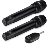 Два беспроводных микрофона. Тип микрофона - динамический. Несущая частота: VHF 174 - 230 МГц. Чувствительность: 108 дБ. Динамический диапазон усилителя: 100дБ. Диаграмма - кардиоидная. Номинальное сопротивление: 600 Ом±15%. Частотный диапазон: 20 - 20000 Гц. Уровень выходного сигнала: 500 мВ. Дистанция приема: до 50 м. Доступные для выбора каналы: 2. Размеры микрофона: 245х50 мм.