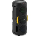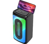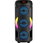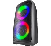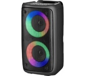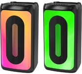 ПОРТАТИВНАЯ АКУСТИЧЕСКАЯ СИСТЕМА Номинальная выходная мощность (RMS): 10 Вт Пиковая выходная мощность (PMPO): 20 Вт Динамики: 2 x 4” Bluetooth 5.4 Поддерживаемые аудиоформаты: MP3 Функция True Wireless Stereo (TWS) Цифровой FM-тюнер (87.5-108 МГц) Воспроизведение с USB 2.0 и microSD карты Аудиовход 3.5 мм jack Встроенная аккумуляторная батарея: 1500 мАч Время работы от аккумулятора до 6 часов* Многоцветная LED подсветка Размеры устройства: 384 х 160 х 156 мм Цвет: черный