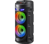 Мощная портативная акустическая Bluetooth 5.3. система с LED подсветкой, встроенным MP3-плеером и FM-тюнером. Поддержка флеш накопителей и карт памяти microSD. Колонка комплектуется проводным микрофоном.
