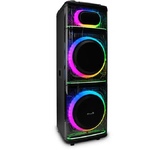 Акустическая система с Bluetooth, FM радио, и TWS. Выходная мощность: (RMS) 100Вт Настраиваемая светодиодная подсветка. Частотный диапазон: 40Гц-20КГц. Диапазон частот FM тюнера: 87,5 - 108МГц. Размеры динамиков - низкочастотный динамик 10"*3, твитер -3"*2шт. Bluetooth V5.0. Воспроизведение музыки с носителей памяти - USB, TF card Вход: USB, вход для микрофона, вход для гитары, AUX, TF card. Регулировка громкости микрофона, уровня эхо. Функция регулировки эквалайзера. Функция TWS Светодиодный дисплей. Встроенная аккумуляторная батарея 12В, 7000 мAч. Внешнее питание: AC 110-220В. Корпус: МДФ + ABS пластик. Дистанционный пульт управления. Размеры изделия, мм - 340*305*1330. Вес:20.7 Кг.