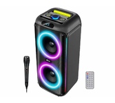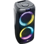 Аудиосистема, 6,5” + 6,5” + 1,5 твиттер, Bluetooth, FM-радио, RGB-подсветка, AUX, USB, microSD (до 32 Гб, MP3), дисплей: LED, до 6 часов, вход: Jack 6.3 мм, Jack 3.5 мм, USB, 3600 мАч, 3.7 В, USB Type-C, 5В, 55,6 x 23 x 24 см, пластик, черный