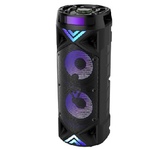 Аудиосистема, 6,5” + 6,5” + 1,5'' твиттер, Bluetooth, FM-радио, RGB-подсветка, AUX, USB, microSD (до 32 Гб, MP3), дисплей: LED, до 6 часов, вход: Jack 6.3 мм, Jack 3.5 мм, USB, 3600 мАч, 3.7 В, USB Type-C, 5В, 55,6 x 23 x 24 см, пластик, черный