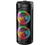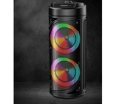 Мощная портативная акустическая Bluetooth 5.4 система с LED подсветкой всего корпуса, дисплеем, встроенным MP3-плеером и FM-тюнером. Поддержка флеш накопителей. Благодаря функции TrueWireless может объединяться в кластер с аналогичной системой и создавать эффект объемного звучания.