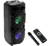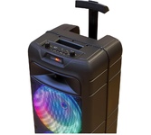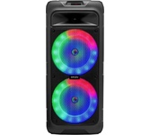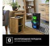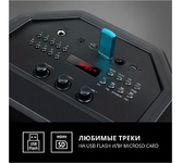 Многофункциональная портативная акустическая система с подсветкой, Bluetooth, LED-дисплей, встроенный эквалайзер, встроенное FM-радио, выходная мощность (RMS), Вт 65 (2 x 32.5), частотный диапазон, Гц 45 – 22 000, диапазон частот тюнера, МГц - 87.5 – 108, размеры динамиков, мм - ВЧ: O 70, НЧ: O 140, воспроизведение музыки с носителей памяти USB, microSD, источник питания литий-ионный aккумулятор: 4400 мA · час (2 шт.) / USB: DC 5 V, тип соединения Bluetooth, проводной, радиус действия, м - до 10, размеры изделия, мм 470 х 240 х 240, вес - 4,35 кг.