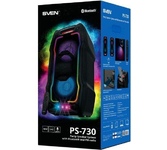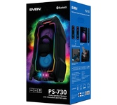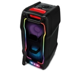Акустическая система с Bluetooth, FM радио, и TWS. Выходная мощность: (RMS), 30Вт Настраиваемая светодиодная подсветка. Частотный диапазон: 45Гц-20КГц Диапазон частот FM тюнера: 87,5 - 108МГц. Размеры динамиков, ? низкочастотный динамик - 8" *2, твитер -2.5*1. Bluetooth V5.0. Воспроизведение музыки с носителей памяти - USB, TF card Вход: USB, вход для микрофона, AUX, TF card. Регулировка громкости микрофона, уровня эхо. Функция регулировки эквалайзера. Функция TWS. Светодиодный дисплей Встроенная аккумуляторная батарея 7.4В, 3600 мAч. Внешнее питание: AC 100-240В Дистанционный пульт управления. Размеры изделия, мм - 280*270*590. Вес: 7Кг