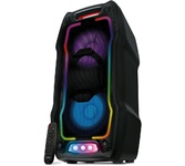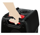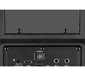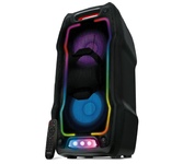 МУЗЫКАЛЬНАЯ СИСТЕМА Номинальная выходная мощность (RMS): 100 Вт Пиковая выходная мощность (PMPO): 1000 Вт Динамики: 2 x 6.5” + 1 x 2” Bluetooth 5.3 Поддерживаемые аудиоформаты: MP3, WAV, WMA, FLAC, APE, M4A Функция True Wireless Stereo (TWS) Цифровой FM-тюнер (87.5-108 МГц) Воспроизведение с USB 2.0 и microSD карты Аудиовход 3.5 мм jack Вход для микрофона 6.35 мм jack Функция караоке Встроенная аккумуляторная батарея: 3600 мАч Время работы от аккумулятора до 8 часов* LED дисплей Многоцветная LED подсветка Уровень влагозащиты: IPX4 Размеры устройства: 600 x 258 x 240 мм Цвет: черный
