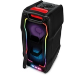 Автономная акустическая система + караоке, Bluetooth, мощность RMS (Вт) - 45, встроенный аккумулятор 3600 мА*ч, сопротивление (Ом) - 4, частотный диапазон (Гц-КГц) 60-18, поддержка USB флэшек, слот для карт памяти SD (Secure Digital, MicroSD (TransFlash), FM-радиоприемник, четырехсимвольный дисплей, яркая подсветка, беспроводной микрофон, размер корпуса (В*Ш*Г, мм) - 290*280*690.