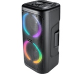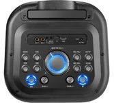 Номинальная выходная мощность (RMS): 80 Вт Пиковая выходная мощность (PMPO): 800 Вт Динамики: 2 x 6.5” + 1 x 1.5” Bluetooth 5.0 Поддерживаемые аудиоформаты: MP3, WAV, WMA, FLAC, SBC Функция True Wireless Stereo (TWS) Цифровой FM-тюнер (87.5-108 МГц) Воспроизведение с USB 2.0 и microSD карты Аудиовход 3.5 мм jack Вход для микрофона 6.35 мм jack Функция караоке Встроенная аккумуляторная батарея: 3000 мАч Время работы от аккумулятора до 8 часов* LED дисплей Многоцветная LED подсветка Размеры устройства: 562 х 266 х 256 мм Цвет: черный