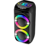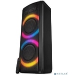 Номинальная выходная мощность (RMS): 80 Вт Пиковая выходная мощность (PMPO): 800 Вт Динамики: 2 x 6.5” + 1 x 1.5” Bluetooth 5.0 Поддерживаемые аудиоформаты: MP3, WAV, WMA, FLAC, SBC Функция True Wireless Stereo (TWS) Цифровой FM-тюнер (87.5-108 МГц) Воспроизведение с USB 2.0 и microSD карты Аудиовход 3.5 мм jack Вход для микрофона 6.35 мм jack Функция караоке Встроенная аккумуляторная батарея: 3000 мАч Время работы от аккумулятора до 8 часов* LED дисплей Многоцветная LED подсветка Размеры устройства: 562 х 266 х 256 мм Цвет: черный