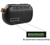 Радиоприёмник портативный трехдиапазонный FM/AM/SW, Bluetooth v.5.3, воспроизведение с USB и с карт памяти micro SD (до 32Gb), аналоговый тюнер, динамик 52мм 5 Вт 4 Ом, ручка настройки частоты и громкости, телескопическая антенна, питание (DC) Type C 5В 1A 3,5 Watt (Type-C - USB кабель 80cm в комплекте), 140*70*95 мм