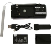 FM диапазон 88-108 МГц, наличие разъемов USB, microSD, разъем для наушников,ЖК дисплей,функция MP3-плеера,наличие LED фонарика, литиевая батарея 400 мАч,наличие USB-кабеля для зарядки через разъем DC