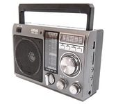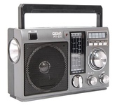 Аналоговый тюнер, УКВ/СВ/Кв1/КВ2 диапазоны (УКВ-64-108МГц, СВ-530-1600КГц, КВ1-3,6-10,0МГц, КВ2-10,0-22,0МГц), 1 динамик (монозвучание), мощностью Ф89MM/8Ом/3W, питание 220В, батарейки R20*4шт (не в компл.), размер 205*135*85, возможность воспроизведения с USB, SD, AUX, разъем для внешнего питания 6В, 1 встроенный фонарь 0,5Вт, телескопическая антенна, разъем под наушники, ручка для переноски.