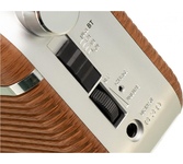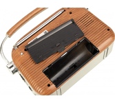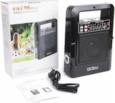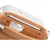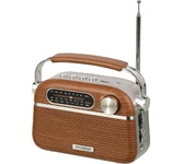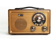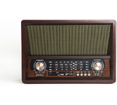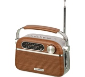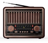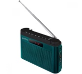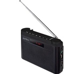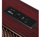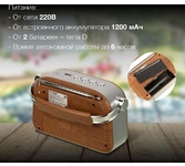 Радиоприемник в классическом корпусе имеет стильный внешний вид, удобное колесико-регулятор радиоволны и кнопки управления на верхней грани устройства. Поворотная телескопическая антенна принимает сигнал в 2-х самых популярных диапазонах (УКВ и FM), также предусмотрена возможность выборочного запоминания 10 станций. Есть встроенный MP3-плеер, который воспроизводит MP3-файлы с карты памяти microSD или USB-накопителя. Аудиовход AUX, разъем для наушников и поддержка режима USB-аудио расширяют функционал приемника. Диапазон воспроизводимых частот: 90–18000 Гц. Выходная мощность: 3+3=6 Вт (RMS). Аккумуляторная батарея: встроенная 1800 мАч (питание от USB). FM-радио: 65,9–74 УКВ / 87,5–108 FM. Габаритные размеры: 140х33х100 мм. Вес: 270 г.