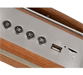 Тип тюнера аналоговый FM-диапазон ДА AM-диапазон ДА SW-диапазон ДА Тип антены телескопическая Звук Количество динамиков 1 Мощность динамика (Вт) 3 Вт Разъемы, интерфейсы Разъем USB 1 Разъем для карт памяти microSD Питание Возможность питания от сети ДА Время автономной работы 6 ч Тип батарей питания аккумулятор Особенности Воспроизведение файлов MP3 Ручка для переноски ДА Особенности Bluetooth Корпус Цвет дерево коричневое Дополнительный цвет серебристый