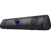 Компактный саундбар с LED подсветкой и функцией Bluetooth под монитор вашего ПК. Регулятор громкости со встроенным выключателем удобно расположен на передней панели, а на верхней панели сенсорная панель управления подсветкой и переключения режимов AUX/Bluetooth