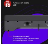 Компактный саундбар с нескользящими ножками под монитор вашего ПК. Регулятор громкости с приятной подсветкой удобно расположен на передней панели.
