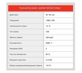 40" (101см), 1920*1080, формат экрана 16: 9, яркость 270 кд/м2, статическая контрастность 5000: 1, угол обзора 178/178, время отклика 8,5 мс, система шумоподавления (цифровой фильтр 3D), цифровой тюнер DVB-T2/DVB-T/DVB-C (MPEG4 H.264 HD), поддержка разрешений HDTV: 480p,576p,720p,1080i,1080p, режим монитора, встроенный кинотеатр высокой четкости USB CINEMA HD, поддерживаемые форматы USB CINEMA HD – mkv,mp4,avi,mov,mpg,ts,dat,vob/H.264,H.263,XviD,MPEG4 SP/ASP,MPEG2,MPEG1,MJPEG,HEVC/m4a,AC3,MP3,AAC,PCM/JPEG,BMP,PNG, поддержка формата звука Долби AC3, поддержка широкоэкранных киноформатов 20: 9 и более, стандарты приема: PAL,SECAM (TV),BG,DK,I, поддержка HDMI 1.4a, HDCP 1.4, номинальная выходная мощность усилителя 2x6 Вт, количество каналов в памяти - 99+1000, телетекст - 1000 страниц, HDMIх3, USB 2.0x2, SCART, AV вход (Jack mini), VGA, PC Audio, YPbPr (Jack mini), Coaxial Audio выход, гнездо для наушников, CI-слот CI+, функции домашнего рекордера USB PVR, потребляемая мощность - 58Вт.