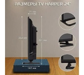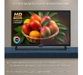 24" (61 см), HD ready (1366х768), тонкие рамки, Smart TV, ОС Android 12 + Bt Launcher, 180 cd/m2±10%, 3000:1, DVB-C/T/T2, 3 HDMI, 2 USB, звук 2x3 Вт, магазин приложений, стриминговые сервисы, VESA 100x100, подставка под телевизор, элементы питания, инструкция пользователя, гарантийный талон
