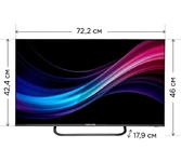 32" , 81,5 см, HD ready (1366х768), 200 cd/m2 ±10%, 3000:1, DVB-C/T/T2, 3 HDMI, 2 USB, звук 16 Вт, тонкие рамки
