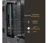 23.6" (61см) LED, HD Ready (1366x768), DVB-T2/T/C, CI+ slot. Цвет: черный. 16: 9, яркость 200кд/м2, контрасность 1000: 1 ; 16.7 млн цветов, USB-медиаплеер (MKV, MOV, AVI, MP3, JPG), аудио 2х3Вт, 1хUSB, 1xHDMI, VGA, PC audio in, SCART, выход под наушники; телетекст, родительский контроль, PVR, Timeshift, Hotel Mode. VESA 100х100
