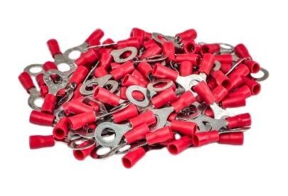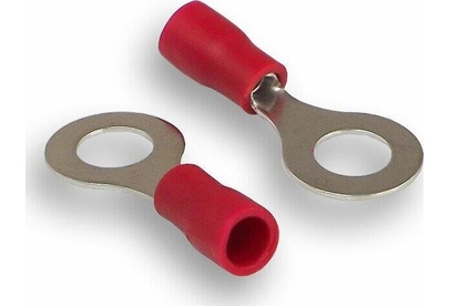Кольцевой коннектор. Изолированный, красный. Диаметр отверстия: 6,4 mm. Входящий диаметр кабеля: 0,5 — 1,5 mm2. Комплект: 100 шт.