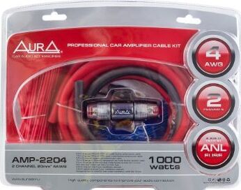 Комплект для подключения 2-х канального усилителя. Силовой кабель 4AWG (20мм2) красный — 5 метров. Силовой кабель 4AWG (20мм2) черный — 1 метр. Колба MiniANL + предохранитель 60A. RCA-кабель: 5 метров, 2 канала, витая пара (RCA-A150 MkII). Акустический кабель 16AWG (2?1,5мм2) — 10 метров. Провод «remote» 18AWG (0,75мм2) синий — 5 метров. Клемма кольцевая для силового кабеля сечением 4AWG (20мм2): 2 шт. Клемма U-образная для силового кабеля сечением 4AWG (20мм2): 2 шт. Шестигранник. Стяжки — 10шт. Упаковка: блистер.