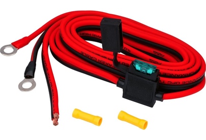 Силовой кабель OFC (бескислородная медь): 2,5 метра. Калибр/сечение: 2x12AWG (2×4 мм2) Держатель MiniATC + предохранитель 30A. Кольцевые клеммы с изолятором, обжатые на кабель: 2шт. Клемма-коннектор обжимная: 2 шт. Упаковка: зиплок-пакет.