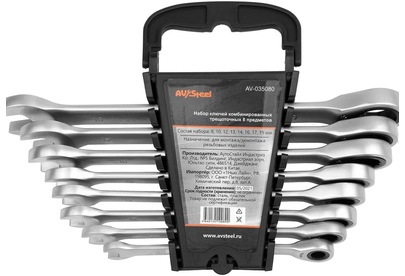 ип рожковые/накидные Размер min (мм) 8 Размер max (мм) 19 Размер min (дюйм) нет Размер max (дюйм) нет Трещотка есть Покрытие никелирование Материал CrV Количество в наборе 8 шт Класс товара Профессиональный Диэлектрическое покрытие нет Вес нетто 1.1 кг Вид миллиметровый Форма прямой Вид упаковки пластиковый держатель