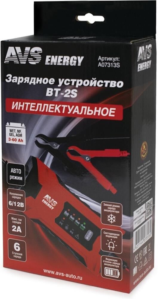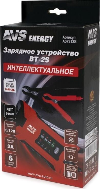AVS BT-2S Зарядное устройство для автомобильного аккумулятора (2A, 25W) 6/12V