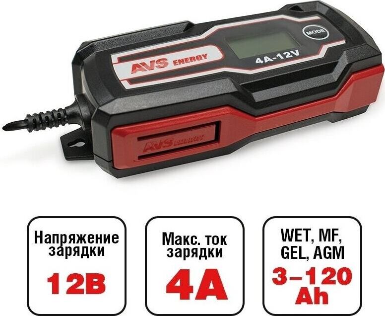AVS BT-4S Зарядное устройство для автомобильного аккумулятора (4A, 51W) 12V