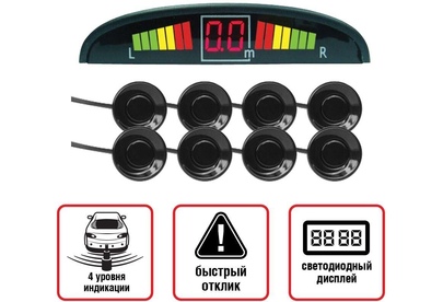 AVS Парктроник PS-128U (8 датчиков+коннекторы, цветной светодиодный дисплей с цифровым табло)