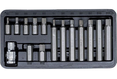Предназначен для работы с соединениями под шестигранник. Вставки изготовлены из прочной хромованадиевой стали. В комплект входит держатель вставки 1/2"DR. Состав набора: • Вставка шестигранник 30 мм: 4, 5, 6, 7, 8, 10, 12 мм • Вставка шестигранник 75 мм: 4, 5, 6, 7, 8, 10, 12 мм • Держатель вставки: F1/2"DR*F3/8"HEX • Пластиковый кейс Материал: хромованадиевая сталь (CrV) Твердость: 48-52 HRC
