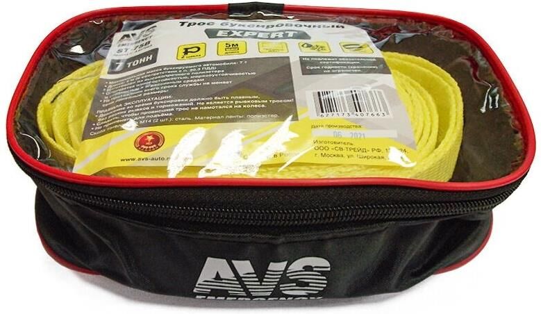 AVS Трос буксировочный (усиленный,цвет-желтый) EXPERT ST-75B 7т 5м.шаклы
