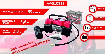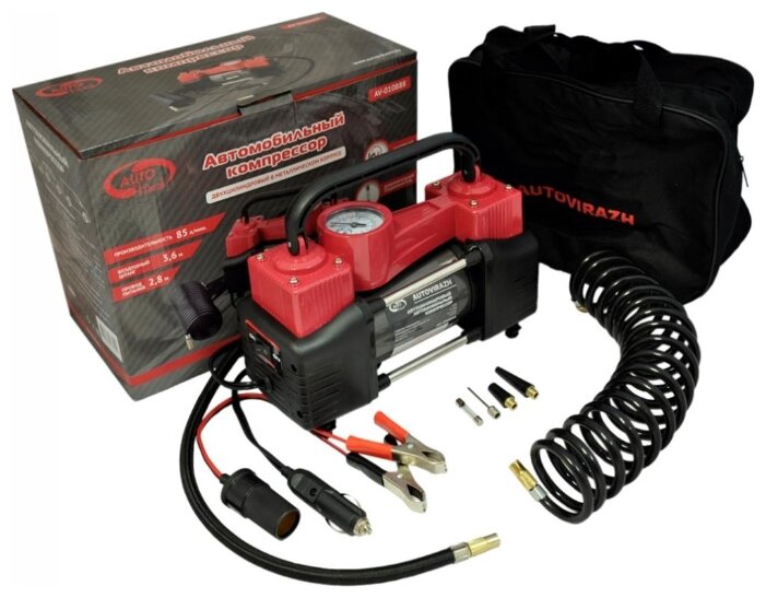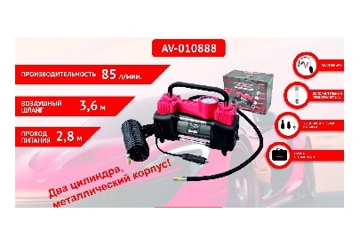 Авто-компрессор AUTOVIRAZH (AV-010888) Компрессор двухцилиндровый 85 л/мин с манометром