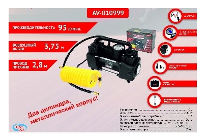 Авто-компрессор AUTOVIRAZH (AV-010999) Компрессор двухцилиндровый 95 л/мин с цифровым манометром