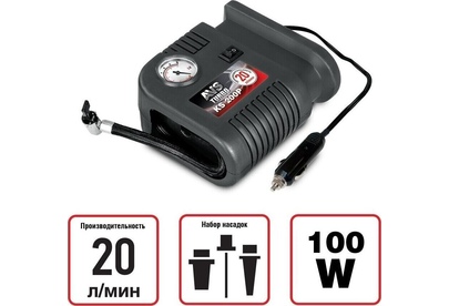 Автомобильный компрессор AVS "KS200P" предназначен для накачки воздухом шин легковых и коммерческих автомобилей. Рабочее напряжение компрессора - 12В. Высокая производительность делает возможным более широкое применение. Автомобильный компрессор может быть использован для накачки мячей, матрасов, проведения покрасочных работ. Максимальный ток потребления: 14 А Напряжение: 12 В Мощность: 100 W Максимальное давление: 7 Атм. Производительность: 20 л/мин. Рабочая температура: от -35°С до +80°С Длина кабеля: 3 м Масса: 0.87 кг Комплектация: • Компрессор • Набор насадок