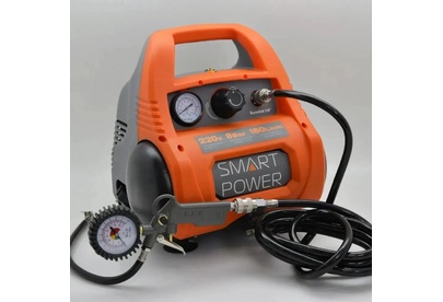 С одноцилиндровой, одноступенчатой компрессорной группой безмасляного типа и прямой передачей. Выполнен с ресивером на 6 л. и предназначен для бытового использования.