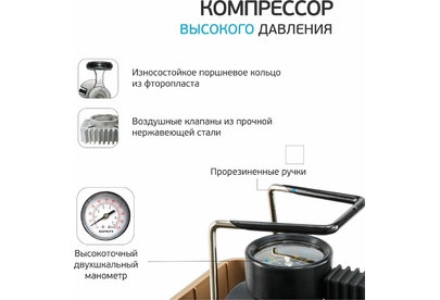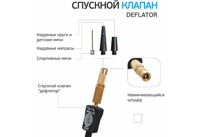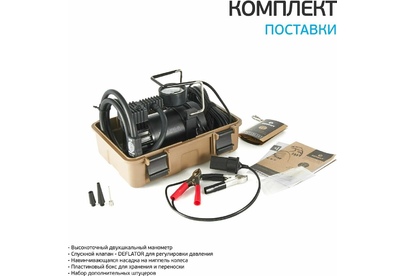 диапазон рабочих температур: -30 ⁰ C +80 ⁰ C, плавкий предохранитель 15 А, спускной клапан - DEFLATOR для регулировки давления