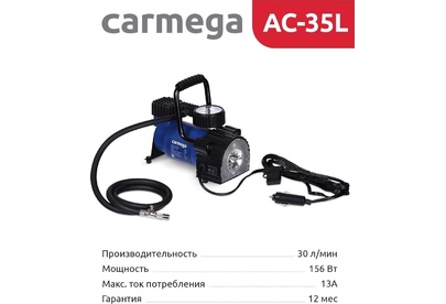 Авто-компрессор CARMEGA CARM-AC-35L Компрессор 35л/мин синий
