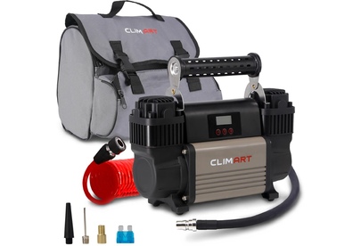 Автомобильный компрессор CLIMART СA-100L Smart – надежный помощник для любого автомобилиста. Компактное устройство предназначено для быстрой подкачки колес. Также с его помощью можно накачать резиновые матрасы, мячи и велосипедные шины – переходники входят в комплект. Высокоточный цифровой манометр позволяет задать одинаковое давление в шинах. Компрессор отличается простотой и надежностью конструкции, он способен проработать без перерыва до 30 минут. Корпус и поршневая группа устройства сделаны из металла, что обеспечивает его повышенную прочность и увеличенный ресурс. Питание прибора осуществляется от АКБ автомобиля. Предохранитель в капсуле защищает устройство и сеть автомобиля от скачков напряжения в случае нештатной работы компрессора. Удобная сумка позволяет компактно хранить компрессор в багажнике.